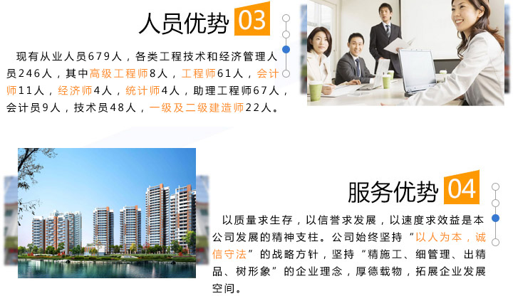質量求生存,以信譽求發展,以速度求效益是本公司發展的精神支柱。公司始終堅持“以人為本,誠信守法”的戰略方針,堅持“精施工、細管理、出精品、樹形象”的企業理念,厚德載物,拓展企業發展空間。 我們將繼續堅持“質量第一、用戶第一、信譽第一”的宗旨,以最優惠的價格,最優質的產品和最完善的服務來滿足廣大用戶的需求。依靠創新和優良的品質,出一流產品,創一流效益,與您共創美好燦爛的明天! ...